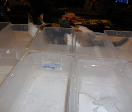 A lot of them were being used for other things. Kitten was after a bug in one of the bins, but the Wonder Under was also intriguing.