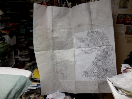 Then I headed to my office and hung up the drawing, and put away some of the fabrics that were piled up in that room (which really needs a serious deep clean…something I was supposed to do this summer)…