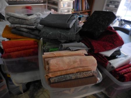 Here’s a different view of some of the fabrics…I didn’t clean up last night after ironing…