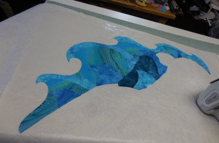 So I’m at piece 1190 of about 1875. Only 700 pieces? I could finish that today if life weren’t happening! So hopefully I’ll be ironing this together…I’ll say by Wednesday night, it should be ironed to the background. Maybe sooner? And then stitching it down. But I’ll be gone for the weekend, so that will probably wait until mostly next week. And then I need to start worrying about the other piece I think. I can’t even guess how long that will take to do, so that’s a little scary, but it’s due before this one. So once this is stitched down, I’ll switch gears for a bit. That won’t be frustrating or confusing at all! Oh well. There will be no one in the house but me, so I can make something for dinner on one night and then eat it for the next five (blech).