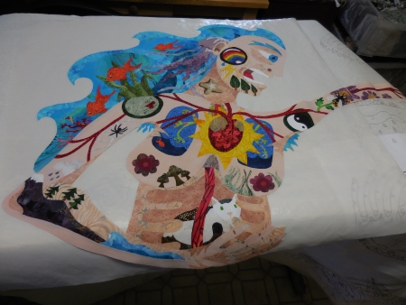 Saturday, I did finally finish the larger of the two figures. Her hair is the ocean and it was kinda fun to do, even in the heat…