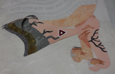 For one thing, this one is down on her knees…symbolism! Yes the other one towers over her. There’s also some different imagery on and around the body, which I started in on last night.