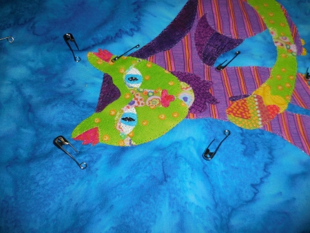 And then I managed to get up off the couch (so tired) and come in here to keep going. I stitched down three tops and repinned them…