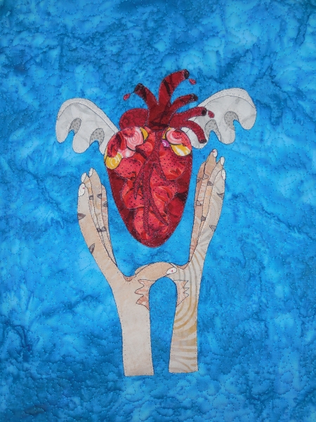 I graded for a little bit more last night, until I was sick of it…and came in here and quilted the second heart…well, first I had to negotiate chair space with Kitten.