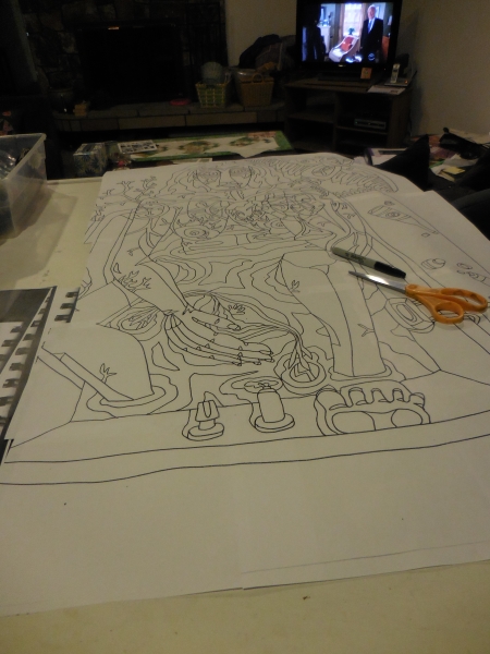 I enlarged the original drawing 250% on 11 x 17 paper. Then I try to fit them together. I hate copiers because it’s never exact enlargement. There’s distortion. But this is the cheapest way to do this…less than $5 for this one. And it works most of the time.