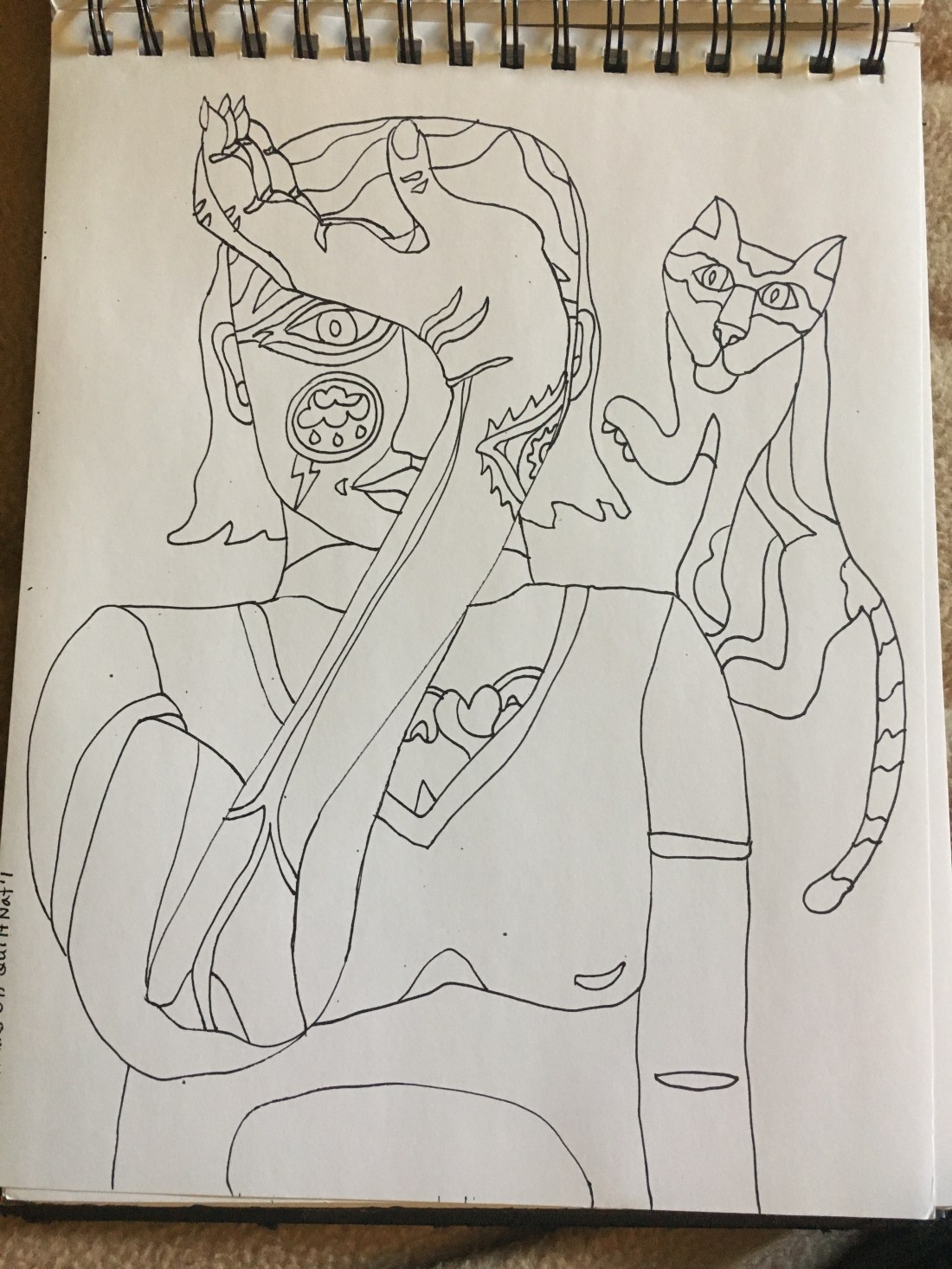 Yesterday afternoon, we had quiet time. I sat and stitched and then drew. Trying to recharge my brain. I graded nothing. No surprise there. I’ll scramble this week. It’ll happen.