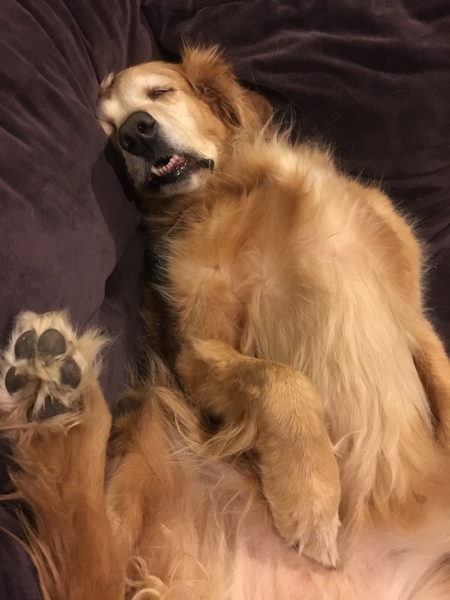 He’s a good couch dog…unlike this goofball…she was kicking me while rolling around in her sleep.
