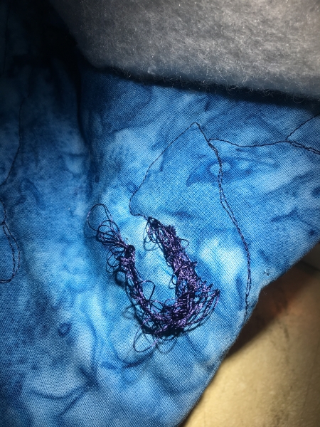 There were a few thread hijinks. I said “You bastard” a lot. IDK whether that’s the thread or the bobbin or the quilt itself. But I said it. In general, though, there were not a lot of issues once I switched out the old needle.