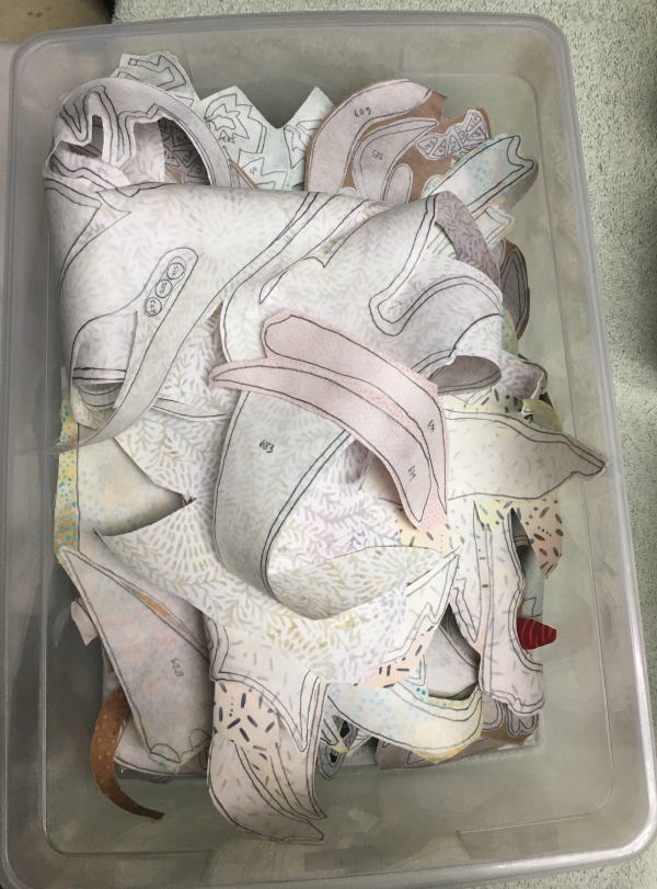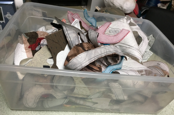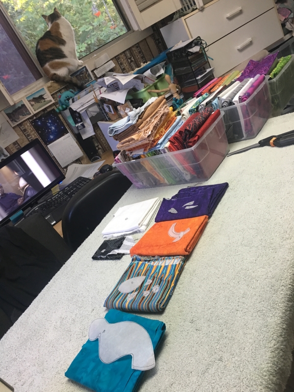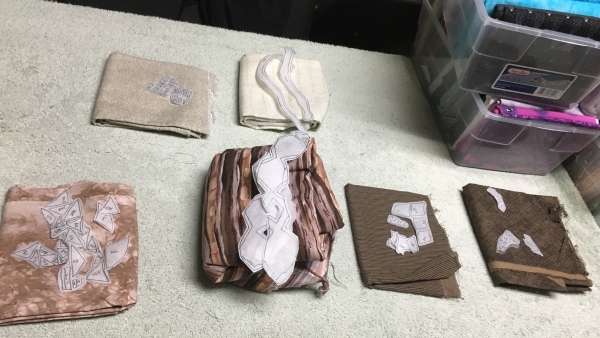 There’s lots of fabric in this one. And here’s all the Wonder Under bits that are not flesh but still part of Figure 3.