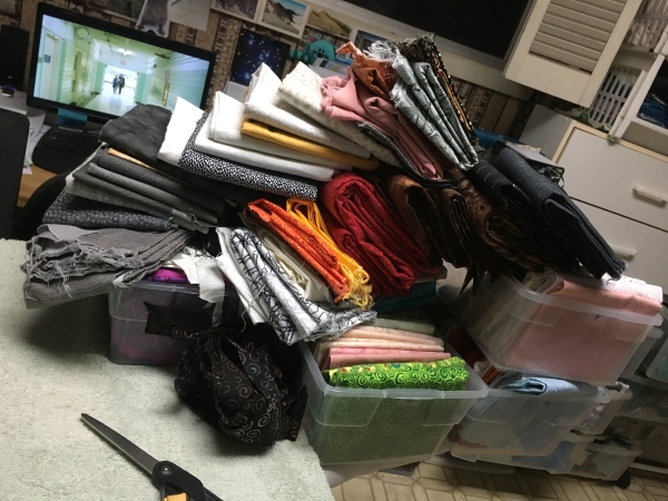 Back to the ironing. While I’m actually picking fabrics, this is what the fabric pile looks like.