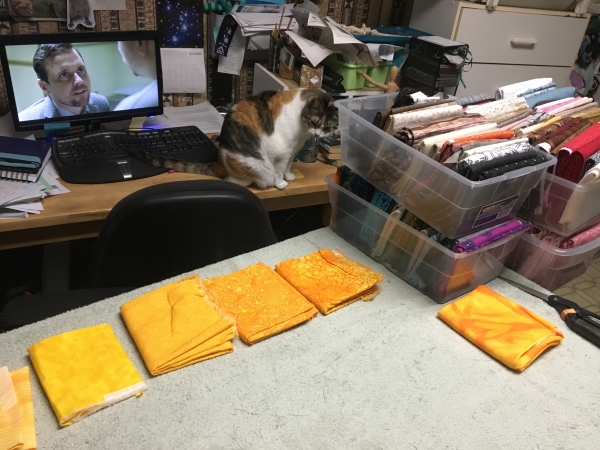 I’ve had this yellow fabric for a long time. I had a half yard of it, because that’s normally what I buy when I’m filling the stash. This is all that’s left.