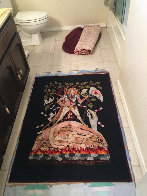 The new year is creeping up on us. I like to look back at what I made in the year past and think about what I might make in the year future. I already have one quilt in progress that will be done in January (knock on wood), plus two in line behind it that don’t exist even in my head yet…well, the second one does, but only by the seat of its pants. I finished 11 quilts in 2018…one of which was a commission and two of which are tiny, so they don’t really count. Five of the 11 have been in exhibits, which isn’t bad, and I hope the rest will make it out into the world this year. Seven of them were made for specific exhibits in mind, and three of those got into the show they were supposed to be for, which is fine…I’m counting the one or two a year I make for Quilt National and Visions, and I never worry about their not getting in…they will get in somewhere. It’s really just about making a deadline to create a large and meaningful piece.