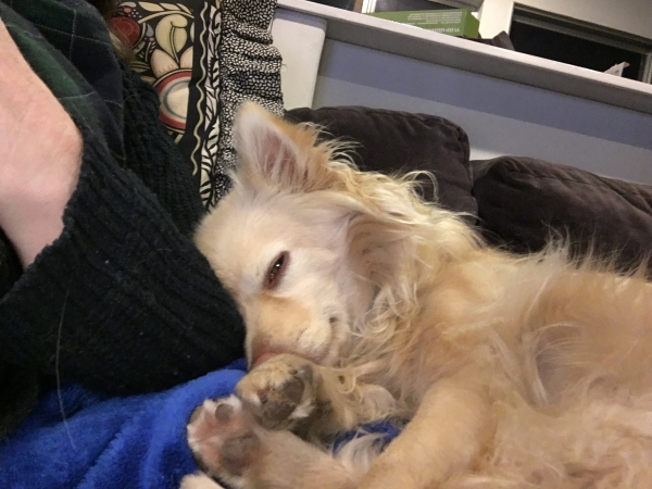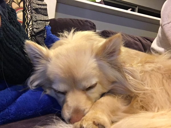 I’ll go back in a few days and do all that other stuff so I can ship it off to her. I came back to a sleepy puppy…