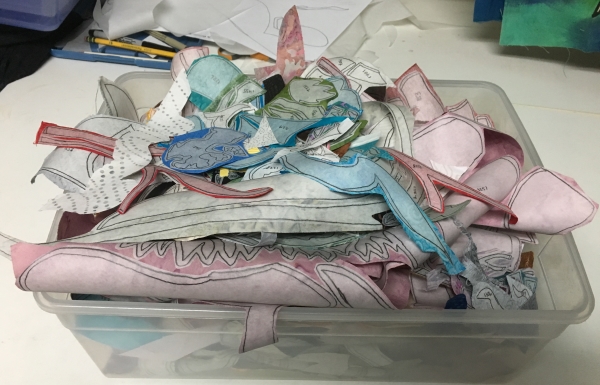 The one I’m working on now is meant for an exhibit, but can show anywhere. It wanders away from the large and political issues I’ve been working with this last year and goes into my head. Not necessarily a pretty place to be, but that’s what this piece is about and it’s why it had to be made.