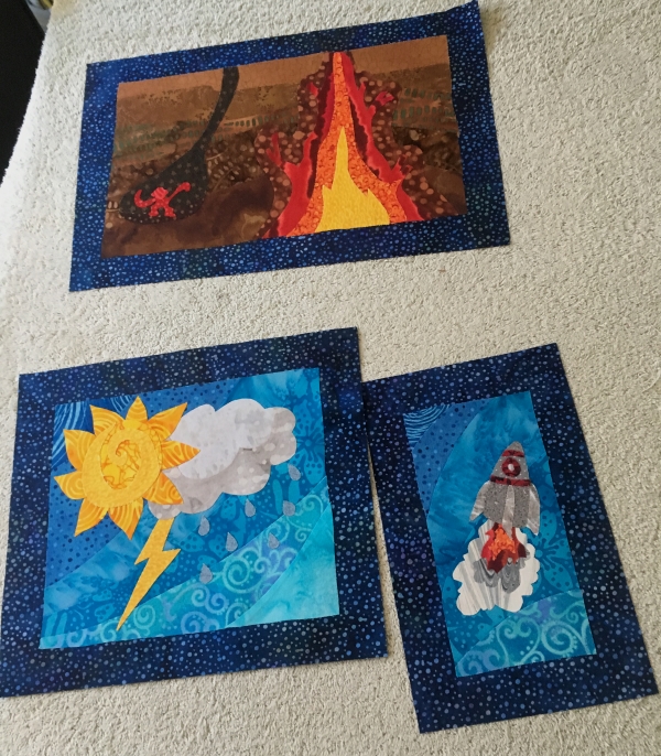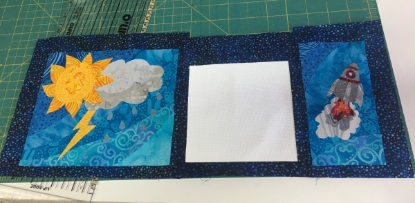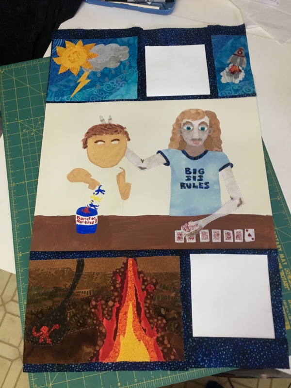 I pieced the top, adding a canvas square in there for my collaborator to paint something on.