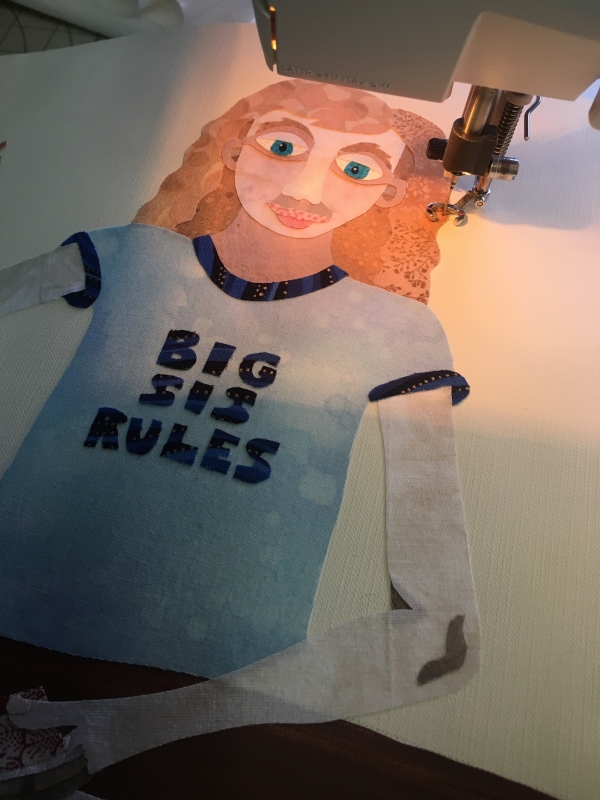 And stitched the sleeves down. Done. A day early. I still need to do a write up before I leave this morning, but it’s getting delivered today. Whoo! Off my plate! I’ll see it again in May. We’ll see what he does with my crazy. Me? Outside my box. It’s good to do that sometimes.
