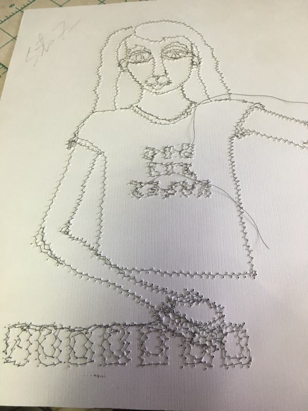 And here’s the bottom strip getting stitched down, with another canvas square in the ground…for ground abstract.