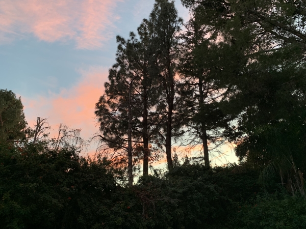 It’s usually hard to get the sunset on my side of the hill. I did notice the dead branch the tree trimmers behind my house dumped on my hedge. Great.