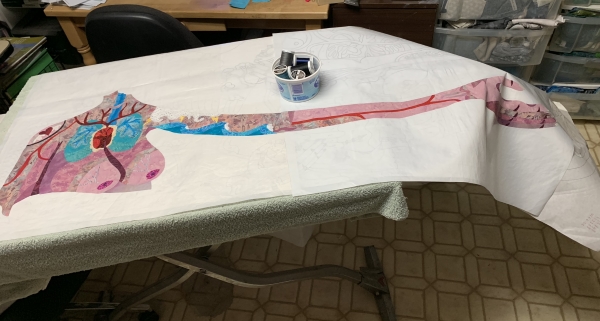 I need to go to work and manage the last day of a project on the same day as a massive math test. I have book club tonight, which is cool. I might get to iron as well…maybe. I hope so. Her other arm? Her head? Seriously, 150 pieces won’t take long. Maybe ironed onto the background on Thursday? Starting stitch down on Friday? I totally will miss the deadline I had for this one, but I just have to assume there was a good reason for that. Mine, not some superpower’s…and I need to start drawing the next one. It will need to be done early so I can do the NEXT next one on time. It should be fine…they finally did the specs for the next show, and although they said no size restrictions when I asked back in December, now it’s max 30″ wide, which is nothing. Tiny. So I’m glad I hadn’t already started drawing. Need to rethink that one a bit. But that’s a future thing. Not a LOT in the future, but probably not tonight. I have to say I really look forward to MAKING every night. This weekend is a bunch of stuff I have to do and making will not be able to be a priority. Last weekend was the same. Ugh. Wish it were different. I would seriously hermit at home all the time if I could get away with it.