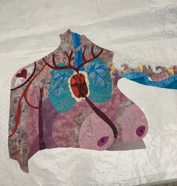She has a torso and both arms, and they’re really LOOOONG…because I made them stretch all the way across the bottom of the quilt.