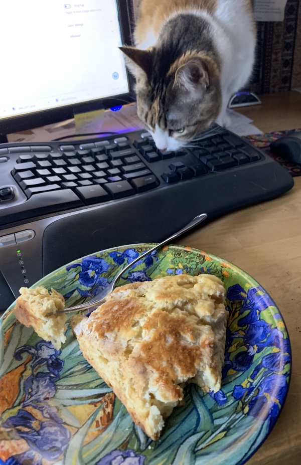 Well, today is Thursday, the day I will finish ironing. That makes it a good day. Plus I don’t have to cook tonight and I still have one of these kickass scones for breakfast. Apple cheddar by Smitten Kitchen