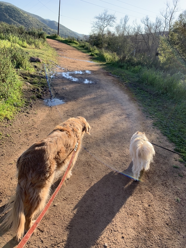 The two of them had a coyote scare last night, very close to the prime peeing spot. Scary. Dumbass puppy thought he would go kill the coyote. He does not realize he would be a tasty treat.