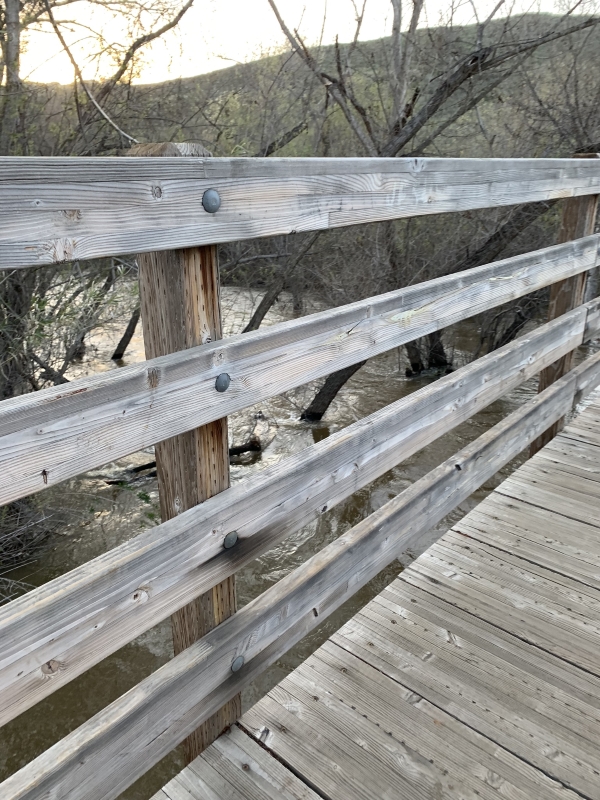 They’d fixed the smaller bridge…the rain had pushed it off its bank and into a smaller creek.