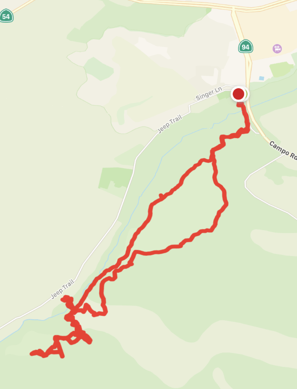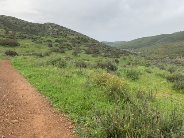 We did a little out and back, reconnaissance, trying to figure out what the orange flowers were (poppies…but all folded up)…but not that crazy stuff. So the mileage was off too. We heard a group of coyotes singing to us…maybe the same young ones as a few weeks ago…but didn’t see any.