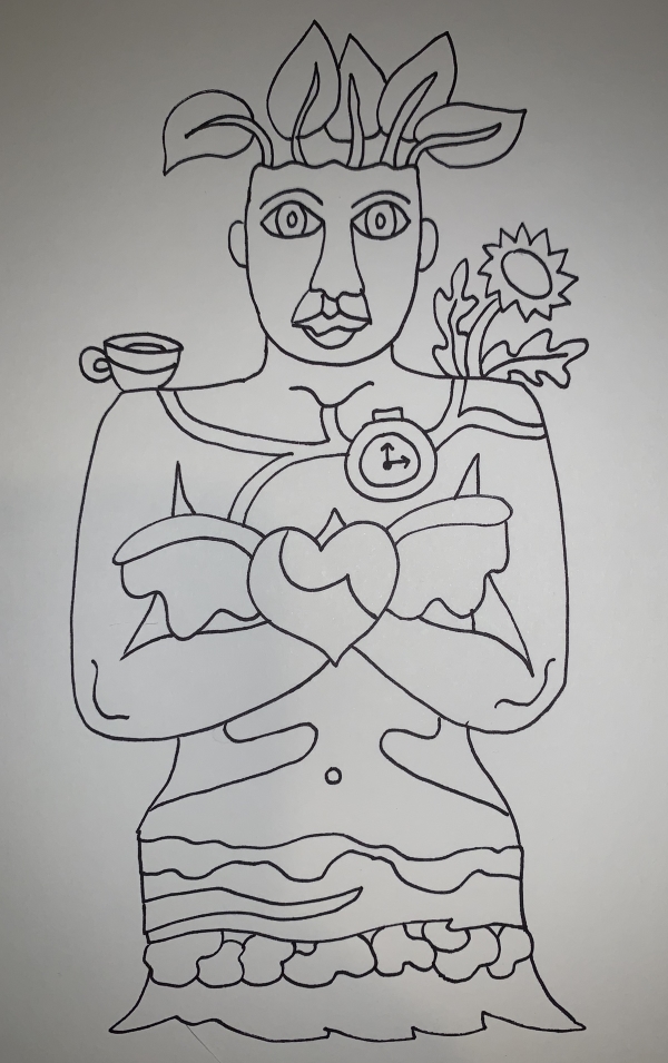 After dinner, I graded, and then did a few more small drawings. This one is a bit weird for an embroidery design.