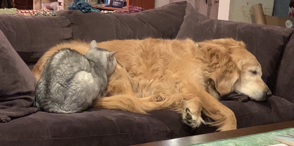 Well. And one of the cats…eventually he reached up and started kneading Calli’s leg, at which point, I shoved him off. I never know how Calli will react.