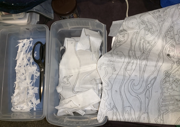 I should be able to get all the Wonder Under cut out this week. Easily. Then on to ironing to fabric. Simba wanted belly rubs…