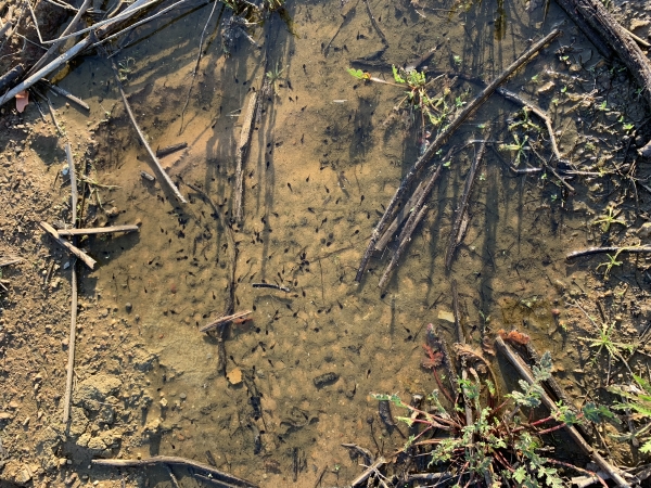 No biggie…we go around. Although there were ducks swimming in it…and tadpoles growing in it (OK, they’re really hard to see in here, but they’re gray-ish and pretty large).