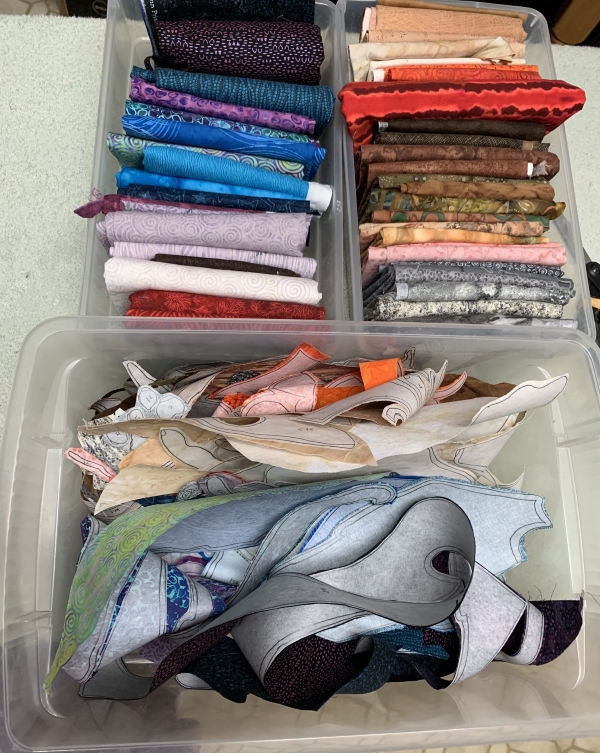 Yesterday was loooooong. At the end, there was art. I used to really only make art during breaks from school, a little bit during school, but mostly when I had time off. But it got more and more necessary that I make art during the teaching months, and now, I’d better be doing something every night or I get antsy, irritable (ha! more than usual), totally cranky. Sometimes that means I get behind in grading, but I figure I’ll catch up eventually. I was at work yesterday from 7:45-4:45, worked through lunch, did a meeting before school and tutoring after…but I didn’t grade when I got home, because by the time I went to the chiropractor and Costco and came home and did a bunch of tasks, ate dinner, finished the binding and sleeves on that giant quilt I started in freakin’ December (yes! a finish in 2019!), washed the dishes, made breakfasts for the rest of the week (fucked that up majorly), and calendared the evening (it was past 9:30 pm) by then…I wasn’t gonna grade anything. Oh yeah, I forgot 30 minutes on the stationary bike so I could actually eat something for dinner, because the diet program is convinced if I don’t eat, I’ll lose weight. Well DUH. Not happening.