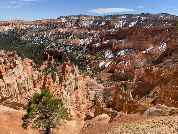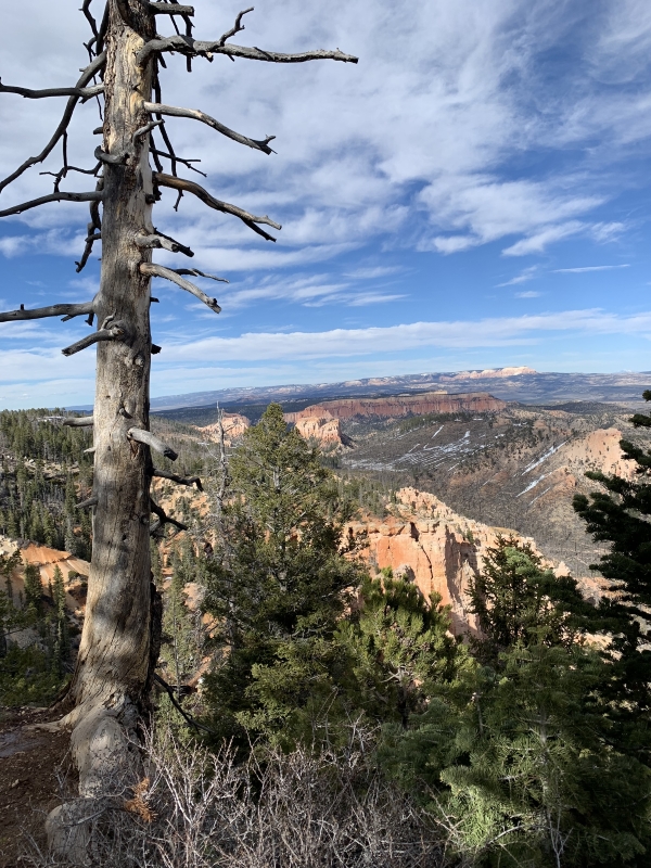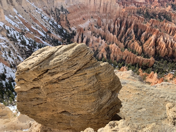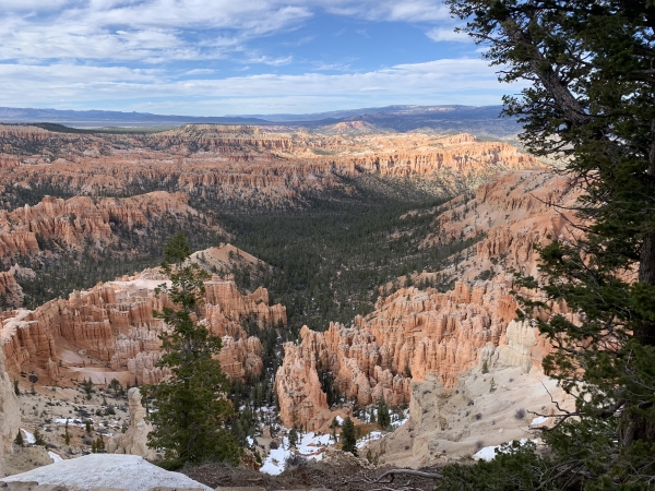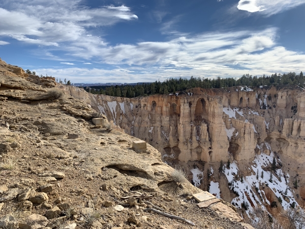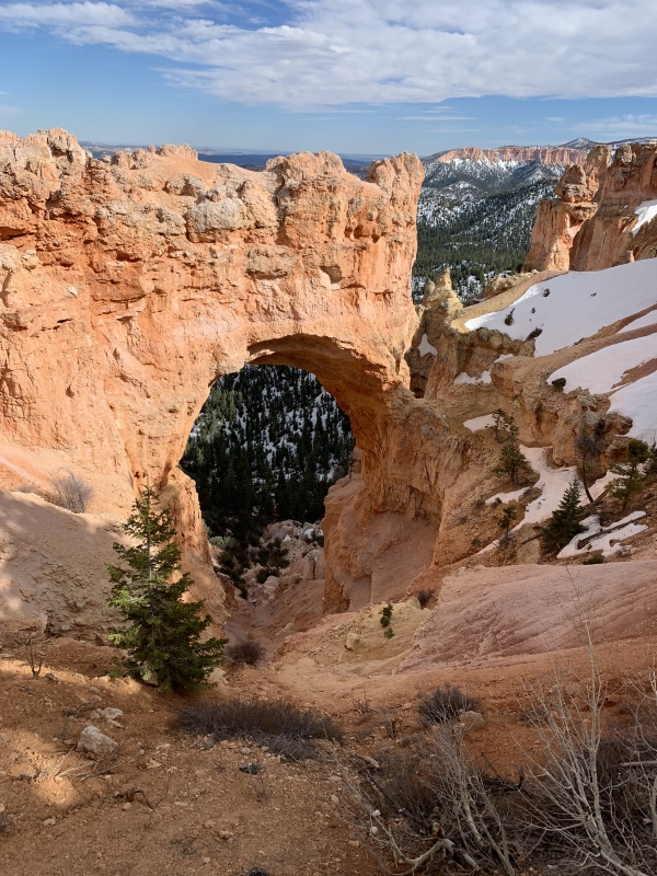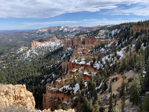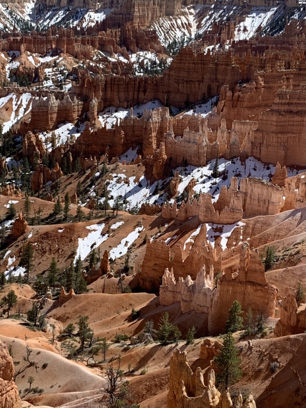 Is not a thing. Not while hiking. No oxygen up that high. OK, not really, and we did eventually adjust, but it made hiking a challenge. After two days in Zion, we left for Bryce Canyon National Park (not a canyon). It’s not very far away, and there are a lot fewer people than Zion, hallelujah. A chunk of the park was still closed for snow…including some hikes and the main road past mile 12. That was still cool, though, because it was beautiful with the snow on the rocks.