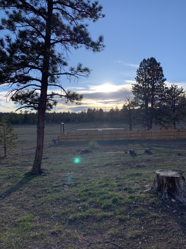 So we overlooked this field…there’s a fence on the left and in front that is the end of the campground, and then there’s all this open space out there. It didn’t block any of the wind, but that died down around 8 PM…