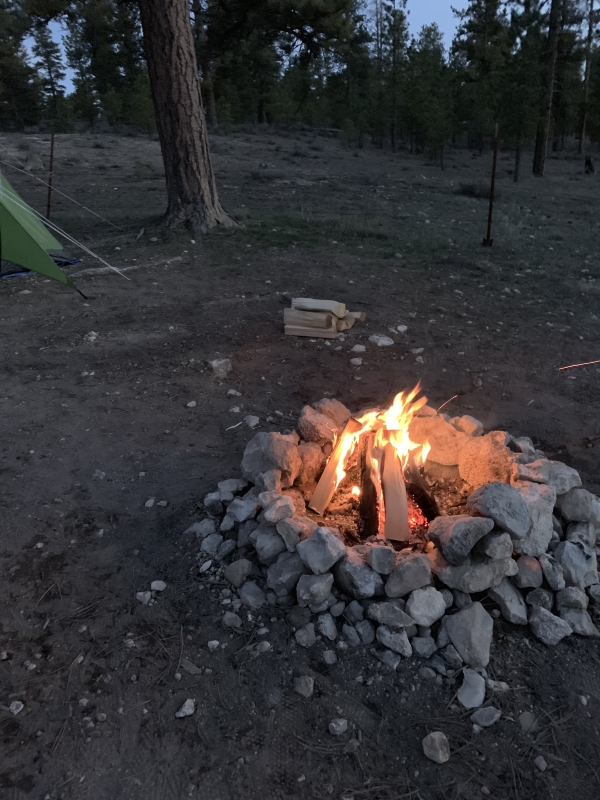 Which was a nice way to end. So I think that other fire picture was actually the second night, where we were warmer (dressed better, towels on the air mattress, etc), but the wind picked up and was throwing things around. We did sleep better, and that weird animal only yowled once. Well. So not a yowl. This is a shitty picture of what is probably a pronghorn antelope (it was far away), and when you listen to them online, that was what we heard.