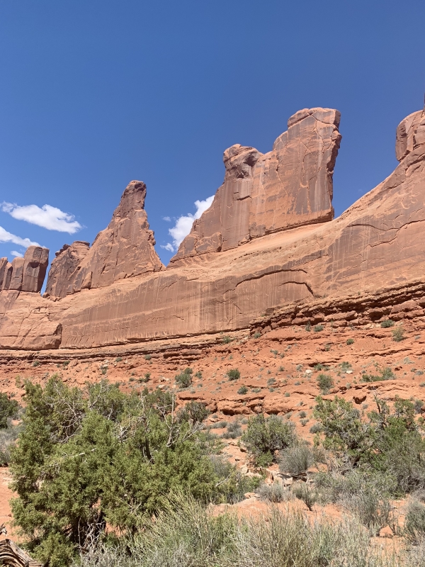 Then we went into town for alcohol, wood, and gas. All important. We came back and tried to hike Park Avenue in the middle of the day heat. Ugh. No. We got about halfway…but I really feel like these rocks should just fall over.