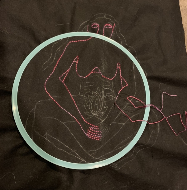 I’ve got a lot of catching up to do. I packed up one quilt, six to go. I traced this piece, ready to embroider…
