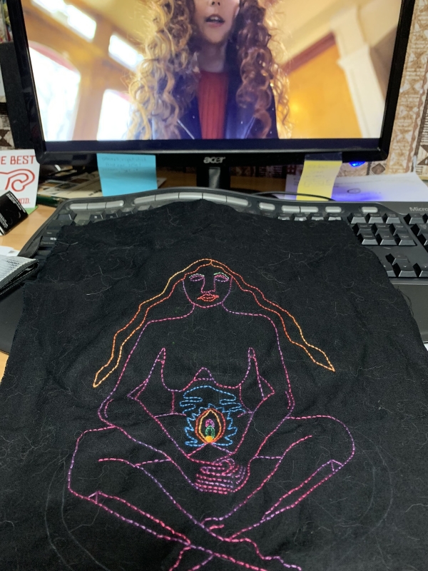 So last night, I was done ironing…I didn’t want to start a whole new section and think about it as a whole and all that, so I sat down to watch the rest of the episode of Russian Doll that I was watching…and I can’t just sit and watch things, so I embroidered.