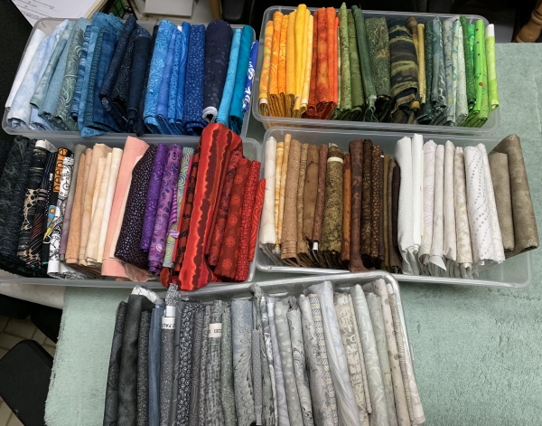 Hey! I finished ironing! Yay! I used 143 fabrics…here they are.