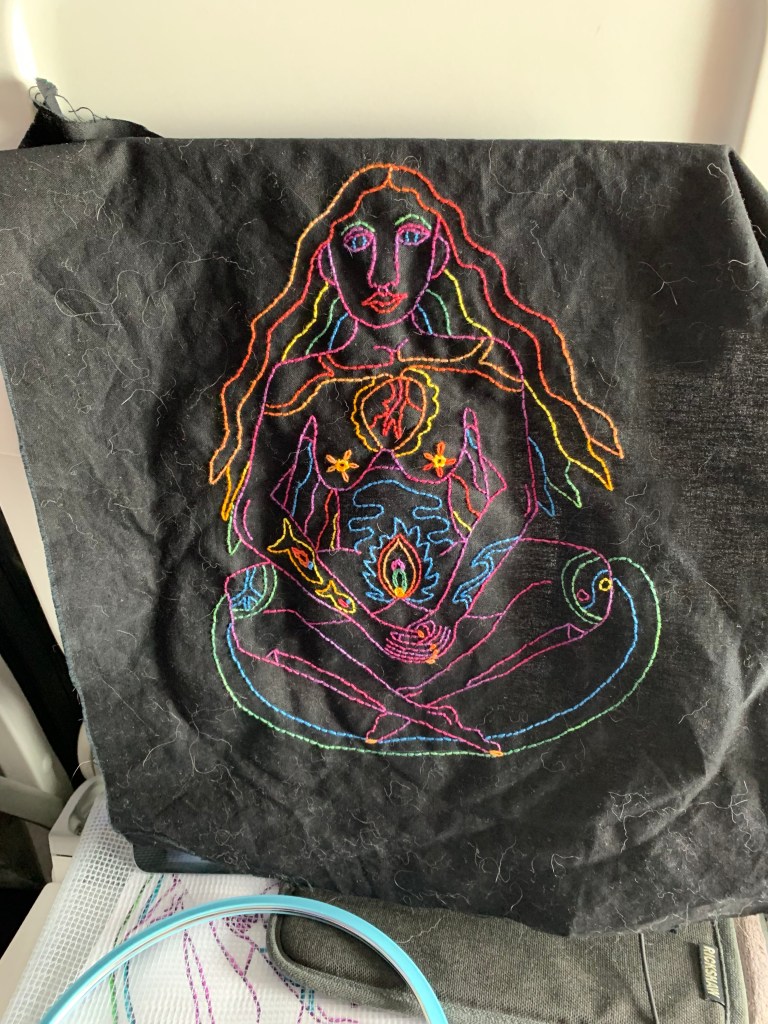 So I spent 5 hours or so on a plane yesterday, watching videos and stitching.