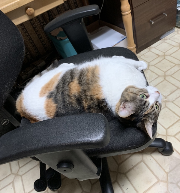 She was watching me quilt. This is why there are two chairs in my office. One for me and one for a cat. Sometimes. Sometimes she wants to be in the same chair I’m in.