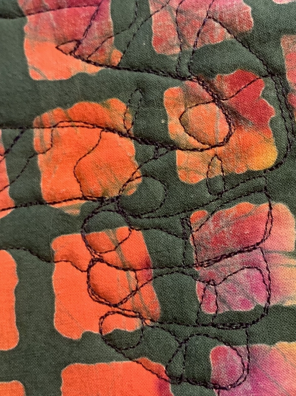 Even though I’m not done, I pulled it off the machine because I need binding fabric and this week is a clusterfuck for getting out of work at a reasonable time. The store closes at 5 and that isn’t going to happen on Tuesday-Thursday. There is supposed to be a 2-hour staff meeting today, but I’m hoping he releases us early, so I can kamikaze over to the quilt shop. I’m pretty sure I can finish the quilting well before Friday, and that’s the next available time to go to the quilt store. If not, there’s a store closer to me that is open until 5:30, but they don’t have as many fabrics…it’ll do if it has to, but I prefer the other place.
