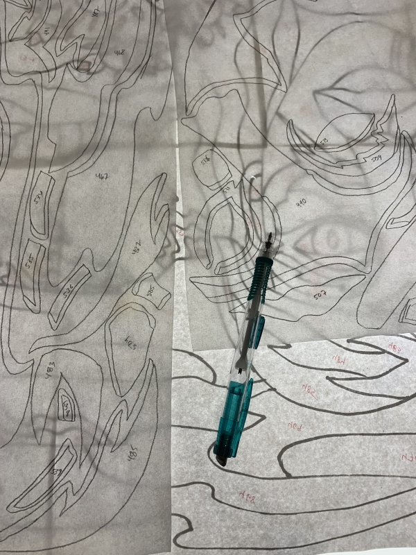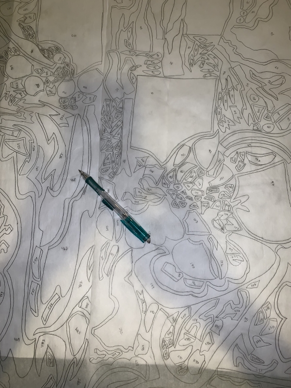 I had about 200 pieces left to trace, so I did them. Yes, that means I stayed up too late. Why do you ask? My brain was wired by then. I was wide awake and totally stressed out. I finished tracing…only two yards and a small bit…