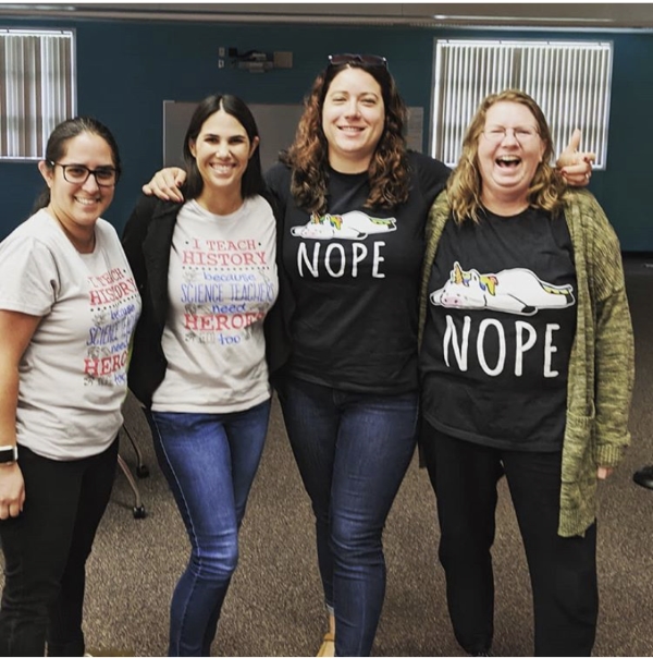 Yeah, we buy matching shirts. Although only two of us know the rules about how to stand to make your waist look better. I like that my NOPE is the bigger one. We did get approved for both proposals for paid work this summer, though, so that’s cool. I do think my team is mostly awesome. It makes it easier. This is not an easy job. It’s not even always rewarding, which is why people say we do it for not enough money…but there are good people with good intentions, and this time of year, you see pictures of former students graduating with honors and that makes it all good. We know how shitty 7th grade can be for a lot of kids.
