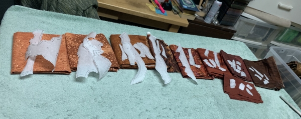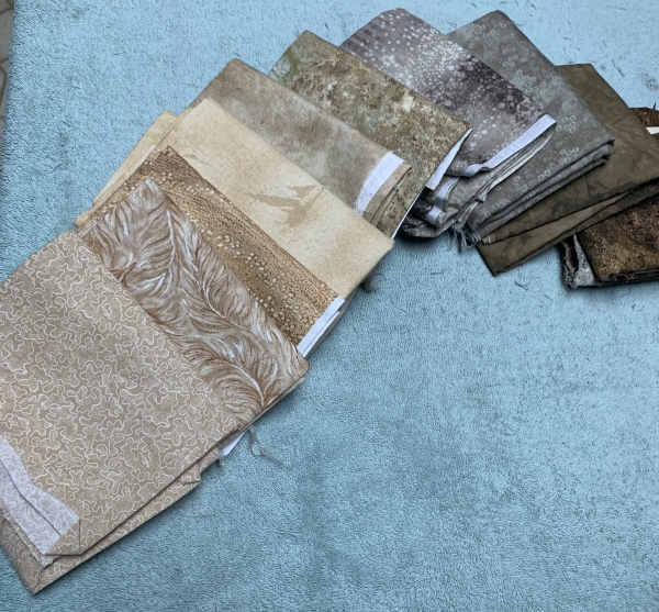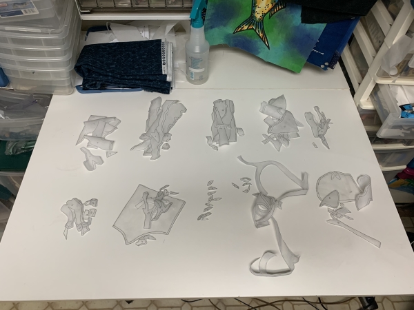 So after all that and whatever else I was putzing around doing (I exercised), I laid out the first 100 Wonder Under pieces…picked a background (I always have a few)…you can see it in the back there.