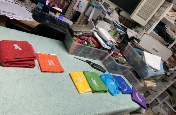 It does mean I’m up early again today for Day 2, but yesterday was good…I came home exhausted, but managed to finish ironing all the pieces down on fabric for this quilt…it took 9 1/2 hours total…so many of my current quilts have rainbows in them.