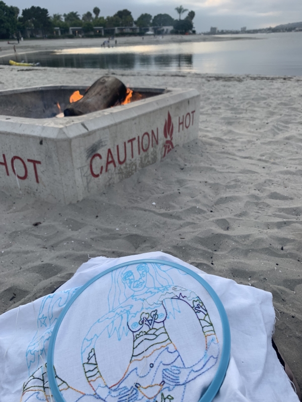 More progress on her…but it’s slow. I need to draw a couple more this week so I can take them to the conference and stitch them. I’ll have to decide whether to make them on dark or light. Maybe I should do a gray. Hmmm. I don’t have gray fabric. Do I need an excuse to buy fabric? Well, I will still need a binding fabric sometime…although so here’s the deal. I came home from the BBQ and exercised and tried to get my to-do list organized, and then I was going to quilt. But then my machine really was being an asshole…seriously, I checked all the settings, but the feed dogs won’t stay down. I can quilt in a straight line, but when I try to free-motion, the thread keeps breaking because the tension is wrong. It did this once before, like a year ago…and it was just in for its annual cleaning, so I’m a bit annoyed. I’ll call the machine guy in a bit, once I’m awake and showered…