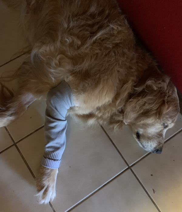 So my car had to be parked down the hill and around the corner, which is a bit of a hike…I did that yesterday morning to go get the dogs for their post-surgery checkups. Simba is fine, feisty as usual. Doesn’t like the vet. Doesn’t like big dogs. Calli is still a little rough in the walking arena, but that’s arthritis and not the surgery, and she got her stitches out! Yay! No more cone…