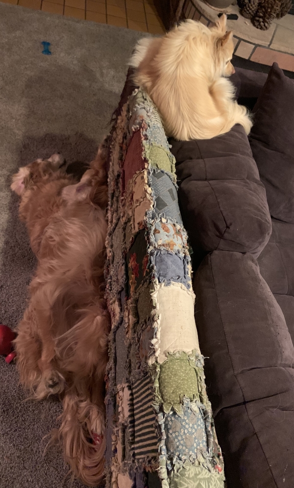 Ugh. I ran a lot of errands yesterday. My doc is on medical leave and we’re still trying to find an answer to the weird pain/discomfort I get randomly, so this substitute doc, who is old and jolly and tells jokes about gall bladder stress tests with pepperoni pizzas, he ordered a bunch of tests and I get to sit around waiting on those. And then I went to JoAnns, which is hell on a good day. So they don’t carry my batting any more, which sucks, because I can’t buy it by the yard locally now. I can buy like a king-size batting and just cut into that, or I can buy a 40-yard roll and store it somewhere. Boychild wanted to know how long it would take to use that up. I usually buy 3 yards at a time, about twice a year, so 6 or 7 years. Nope. That’s silly. Annoying and silly. Then I went to Costco and you know how that goes. It’s just full of people who don’t know how to drive their carts. But I crossed off a big chunk of stuff on my to-do list, plus we have three bags of Ancient Grains now, so that’s good. I’ll deal with the batting later. It’s still on my list, but…I don’t know what to do about it. Make a decision.